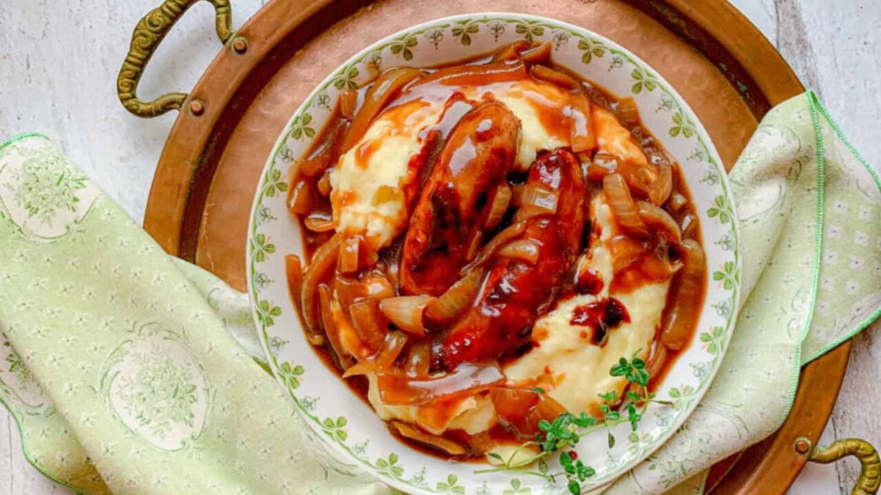 Get the recipe: Bangers & Mash with Guinness Gravy