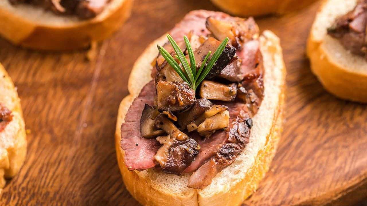Steak and Shiitake Mushroom Bruschetta Crostini Appetizers