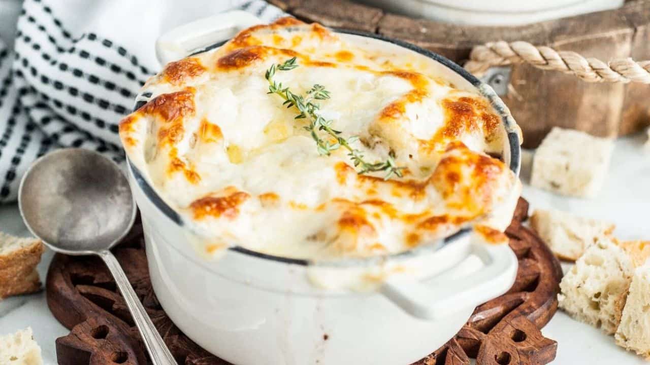 Italian Inspired French Onion Soup with Fontina and Mozzarella